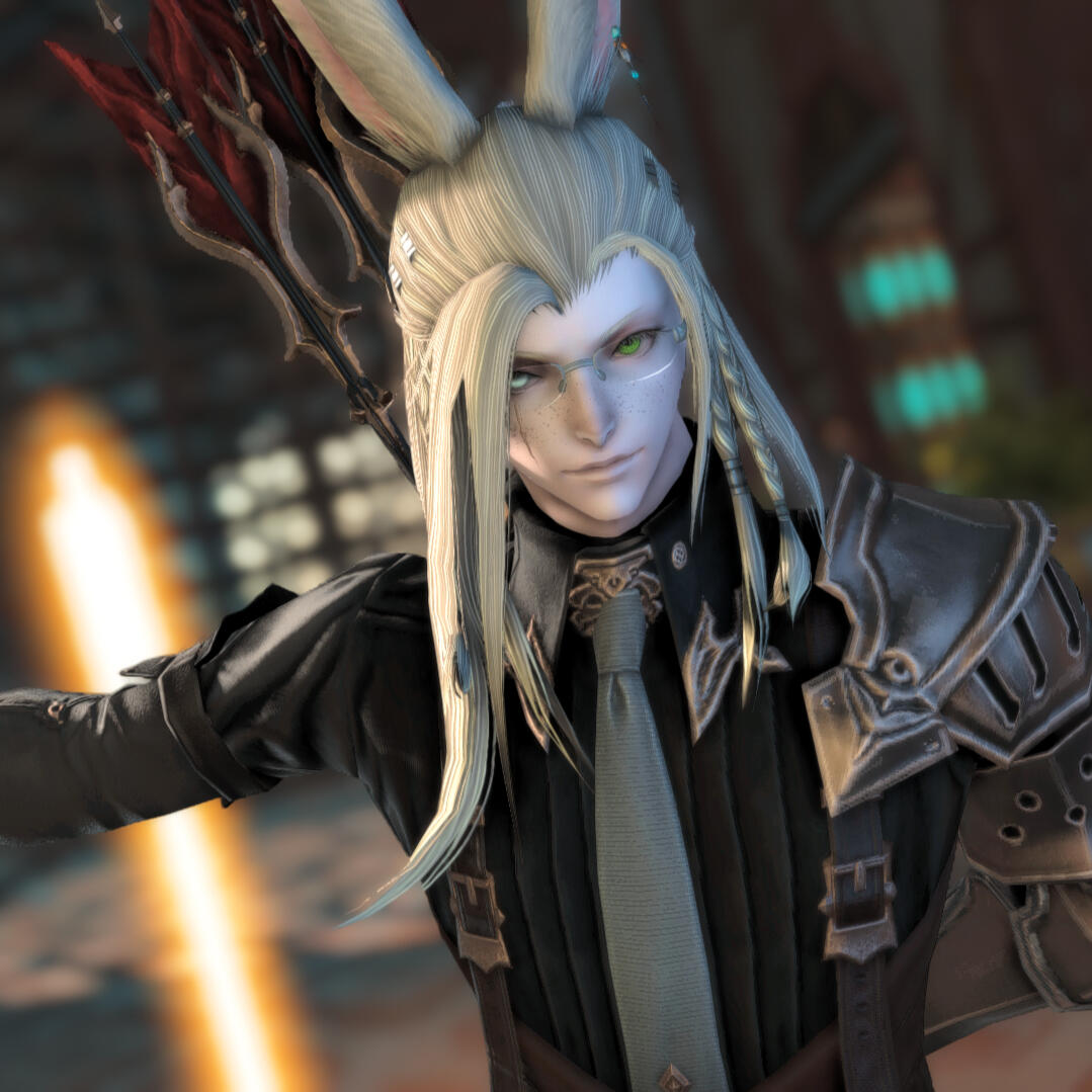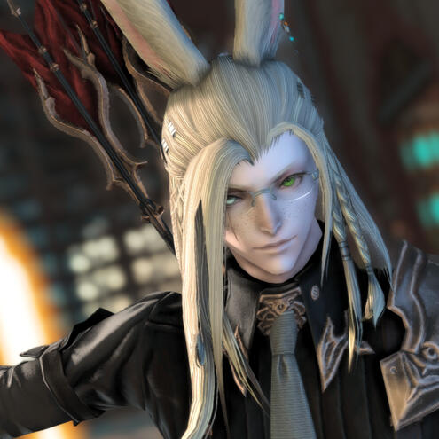Relations: NoneErindet broke the Green Word the moment he was taken from his tribal village in the Skatay Range. He found no joy in the idea of a solitary life as a defender of a village he was now exiled from just for being male and decided to venture out into the world unknown, never to return.His direction pointed him into Dalmasca where after 6 months of bounding place to place he finally settled in Rabanastre. An older viera man who had broke their own Green Word centuries before had set up and worked in his own magitek woirkshop, taking in the wandering youth who left the jungle just like him. From him he learned the ways of the craft, doing what he could to earn his keep.As Garlemald descended, however, he was sadly capured by their forces and conscripted to work within their ranks and their own workshops for decades. He managed to escape one day, although he doesn't share the story of how but it's clear from his soulless smile that he's not quite the same man he used to be.He now resides within a Free Company in Gridania specialising in research and generally tinkering with anything brought to him.