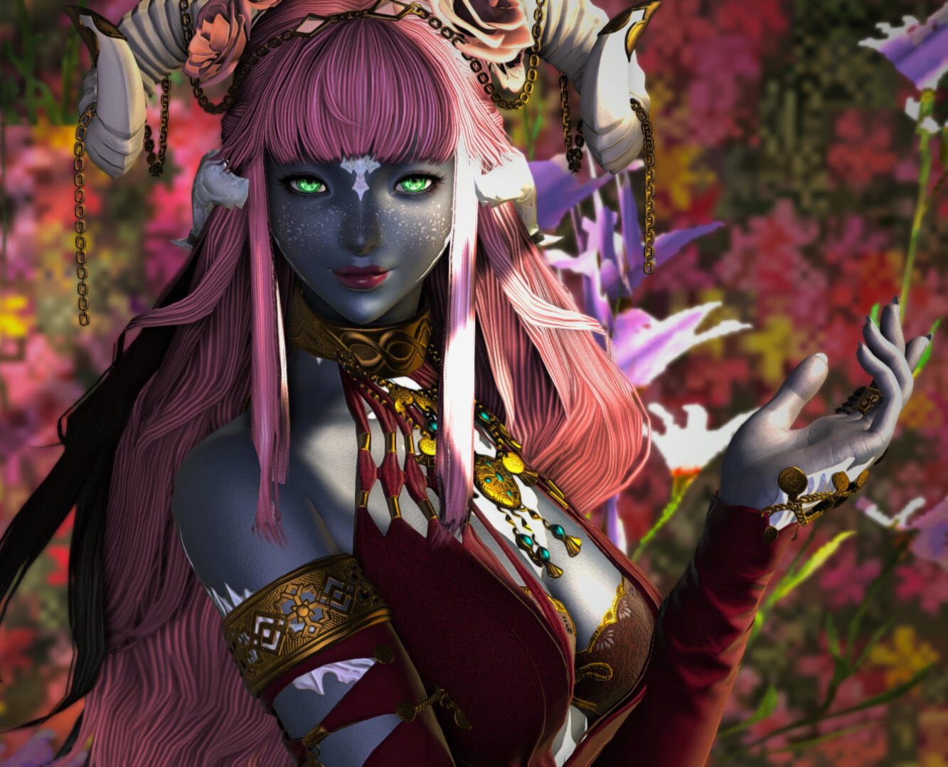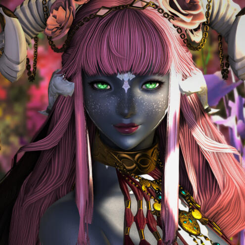 Relations: Ajirai Isse (Husband)Seika's family knew she was special from the moment she first opened her eyes; the reversed limbal rings and opalescent scales being clear signs indicating she had been blessed by fate to inherit the ancient family gift of divination.Through her younger years her guesses were always right, whether it be as simple as predicting the weather or what someone would be wearing to the more complex such as predicting marriage pairings years before the happy couple formally met, and was blessed with overall good fortune. Physically, the reversed limbal rings began to glow from the centre, leaving a darker green rim edging the sage green glow. She developed a second set of horns shortly after her birth of which she was rather fond of decorating in flowers and filigree from childhood to present day.In the present, she still wanders across Eorzea and the Far East from time-to-time as the fates dictate but she does have some affiliations and friends who she holds near and dear, and finds herself being pulled in their directions quite regularly. Where will you encounter her?