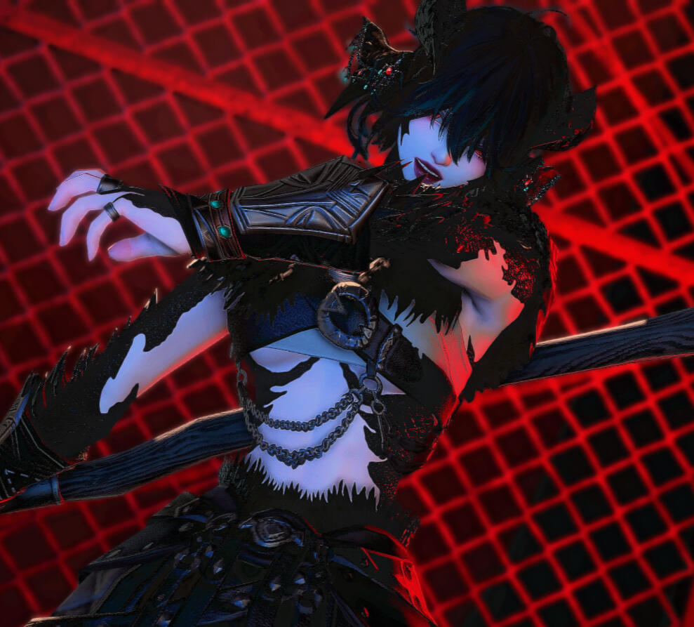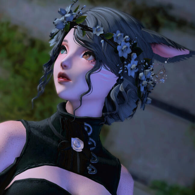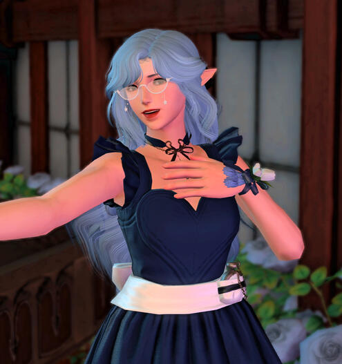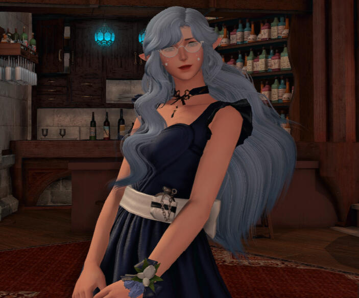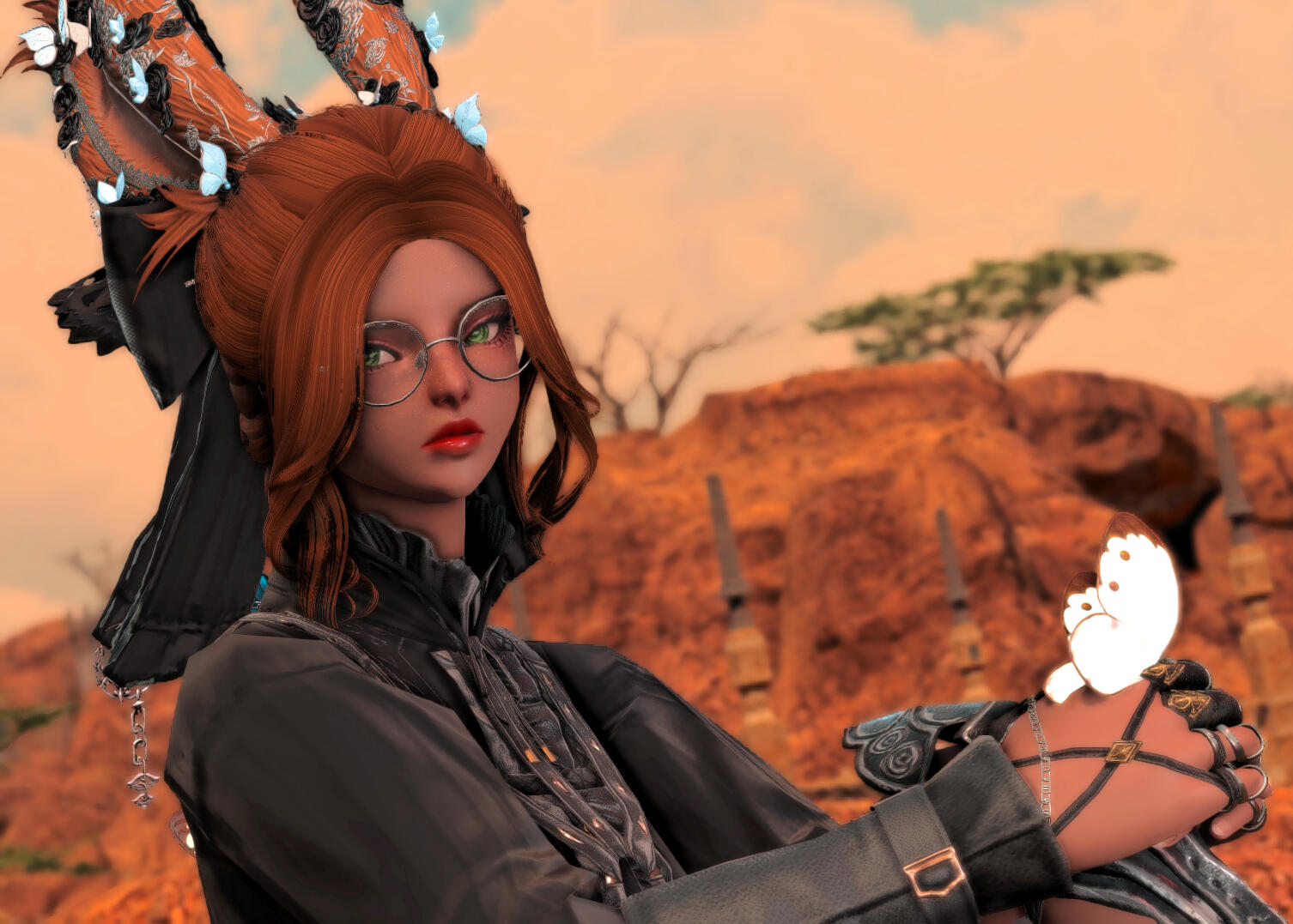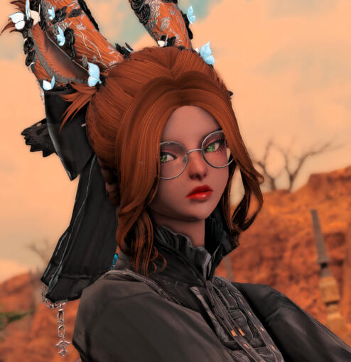 • There always seems to be at least a couple of butterflies around her at any one time, sometimes increasing in number.•She is never not impeccably dressed, but almost always in black and blue. Jewelery adorns her ears at all times and her fingers are filled with silver rings.•She doesn't try and hide the fact she's a Red Mage. In fact, her foil and accelerator are decorated in the same black and blue ribbons which adorn many of her clothes. With the confidence and elegance of how she holds herself, she appears to be very talented indeed.• She's well-travelled and has already amassed a lifetime of history. Perhaps if you catch her in a good mood you could speak with her about the history of the world. Make sure you bring her tea, though.