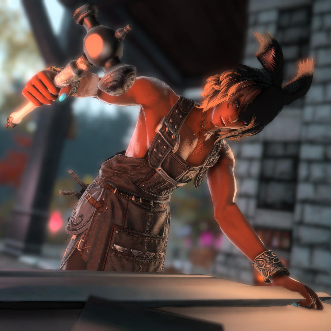 Eira's overprotective mother led him to leave his village at the very young age of 17, somehow landing on his feet in Tuliyollal by being snapped up for an apprentiship in the local forges.Within the vibrant city life he thrived and after two decades under his tutilage his old master declared he'd taught Eira all he had to know. That wasn't enough for him, however, as he was forever seeking to quench his curiosity on what could be improved or combined to be better.This curiosity led him to Aldenard where he found he had an affinity with the arcane arts just as much as he had with a hammer. Travelling back and forth between Tural and Limsa over the coming years led to him to his studies into combination weaponcraft with arcanima. He now resides within a Free Company in Gridania specialising in research.
